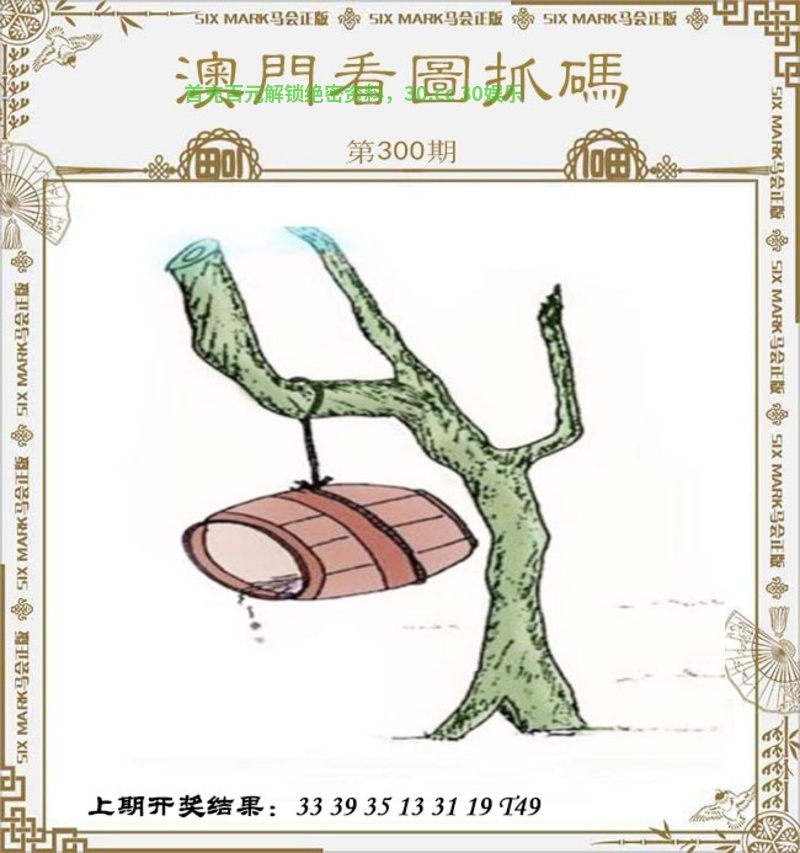 【妙解看图抓码】300期:图中有一棵大树,有一个悬挂在树枝上的木桶,底部有一个洞,水正从洞中滴落。 【看图抓码主看】:龙兔虎马鸡牛 |